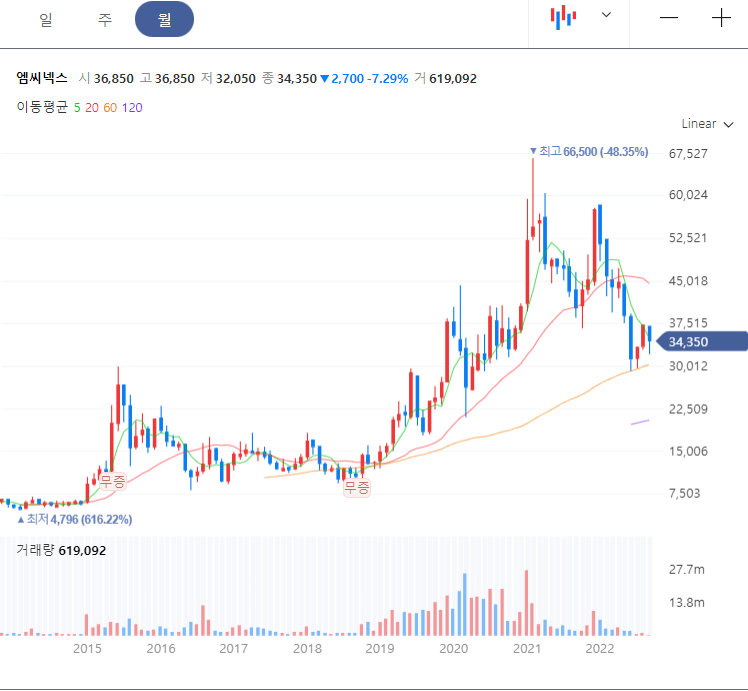 엠씨넥스 주가 차트