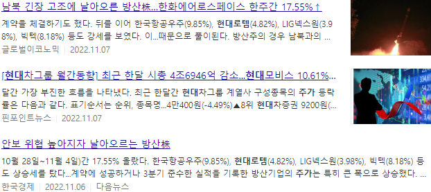 6월 말 한국과 폴란드 정상회담 직후에는 대규모 방산 수출 기대감에 방산주 주가가 크게 올랐다.