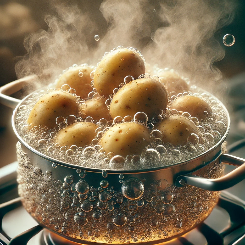 - 끓이기: 강한 불에서 물을 끓이다가, 물이 끓기 시작하면 불을 중간 불로 줄입니다. 감자가 익을 때까지 약 15-20분 정도 삶아줍니다. 감자가 익었는지 확인하려면 포크나 나이프를 찔러보세요. 쉽게 들어가면 다 익은 것입니다. 삶는 시간은 감자의 크기와 종류에 따라 다를 수 있으므로, 주기적으로 확인하며 조리 시간을 조절합니다.