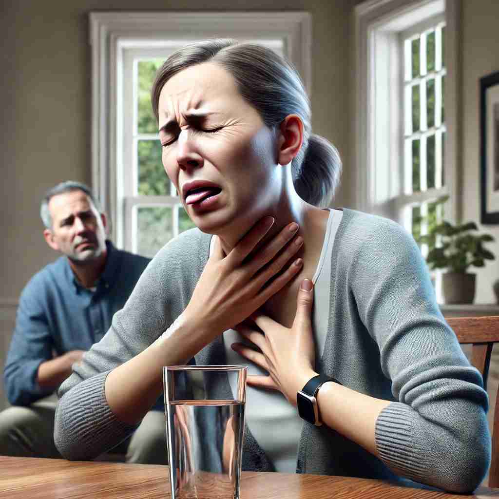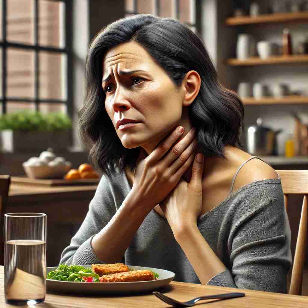 갑상선암이 식도를 압박하거나 침범할 경우 삼키기 어려움(연하곤란)이 나타날 수 있습니다. 이로 인해 음식을 삼키는 것이 불편해지고, 음식물이 잘 넘어가지 않는 느낌이 들 수 있습니다.
