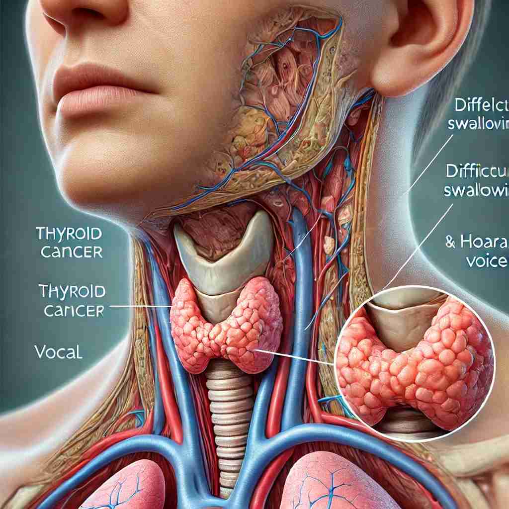 갑상선암은 목의 결절, 통증, 쉰 목소리, 삼키기 어려움 등의 다양한 증상을 나타낼 수 있으며, 조기에 발견하고 적절히 치료하면 좋은 예후를 기대할 수 있습니다. 주요 위험 요인으로는 성별, 연령, 가족력, 방사선 노출 등이 있으며, 진단은 초음파, 미세바늘 흡인 세포 검사, 혈액 검사 등을 통해 이루어집니다. 치료는 주로 수술, 방사성 요오드 치료, 갑상선 호르몬 억제 요법 등을 포함하며, 진행된 경우에는 화학요법과 표적 치료가 사용될 수 있습니다. 갑상선암에 대한 이해와 조기 검진을 통해 효과적인 관리를 수행하는 것이 중요합니다.