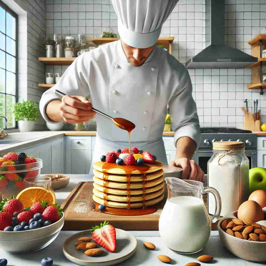 쌀가루나 아몬드 가루를 사용한 팬케이크는 글루텐프리 아침식사로 훌륭한 선택입니다. 쌀가루, 베이킹 파우더, 우유(또는 식물성 우유), 계란, 설탕을 섞어 반죽을 만든 후 구워냅니다. 블루베리, 바나나, 꿀을 곁들이면 완성입니다.