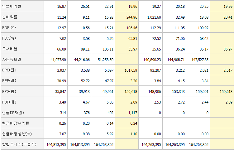 네이버 투자지표