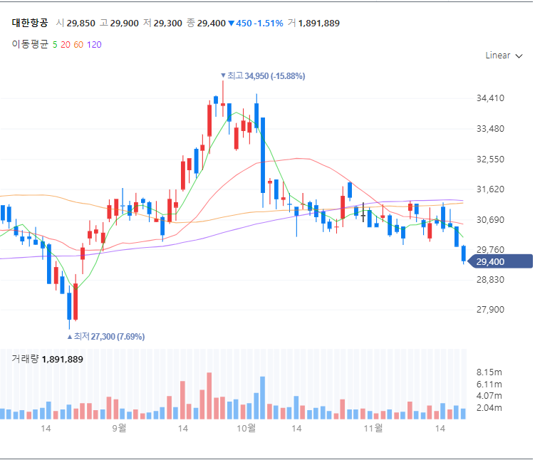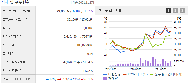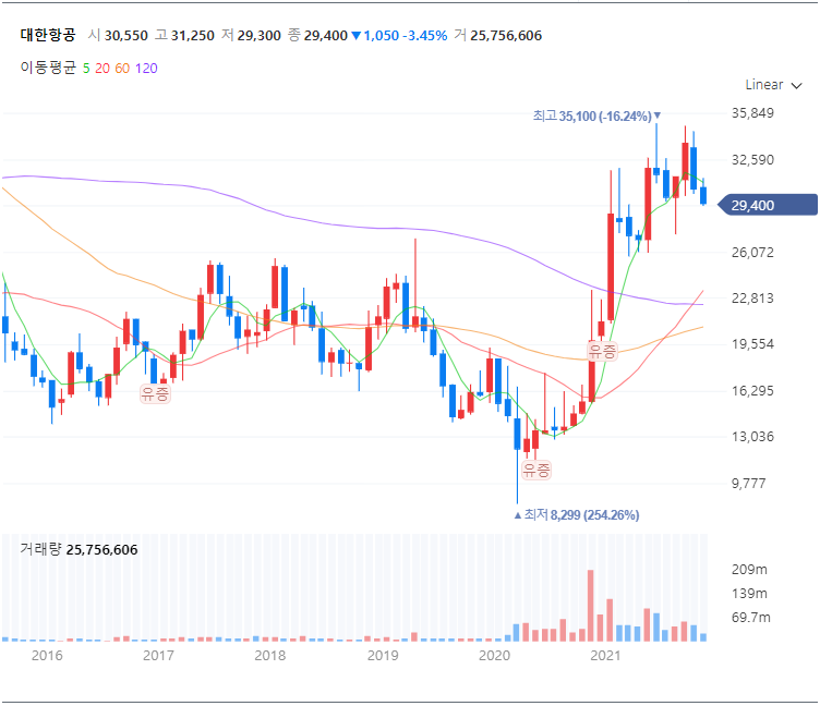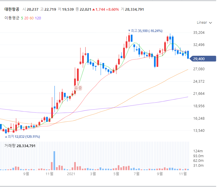 대한항공 주가 차트