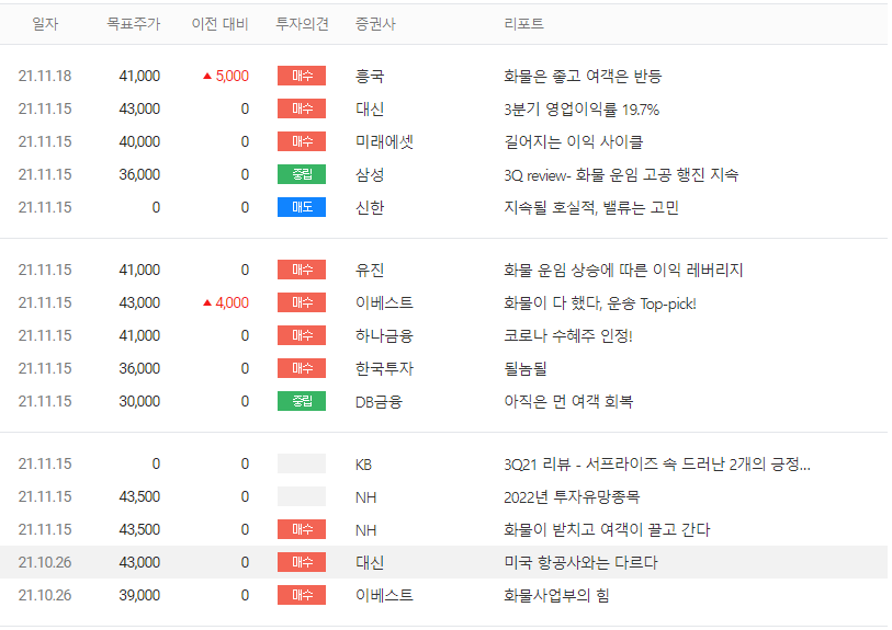 대한항공 주가 컨센서스