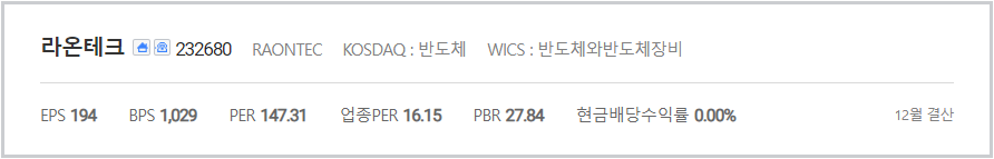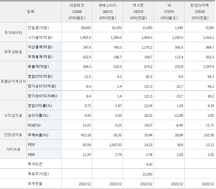 라온테크 펀더멘탈 비교