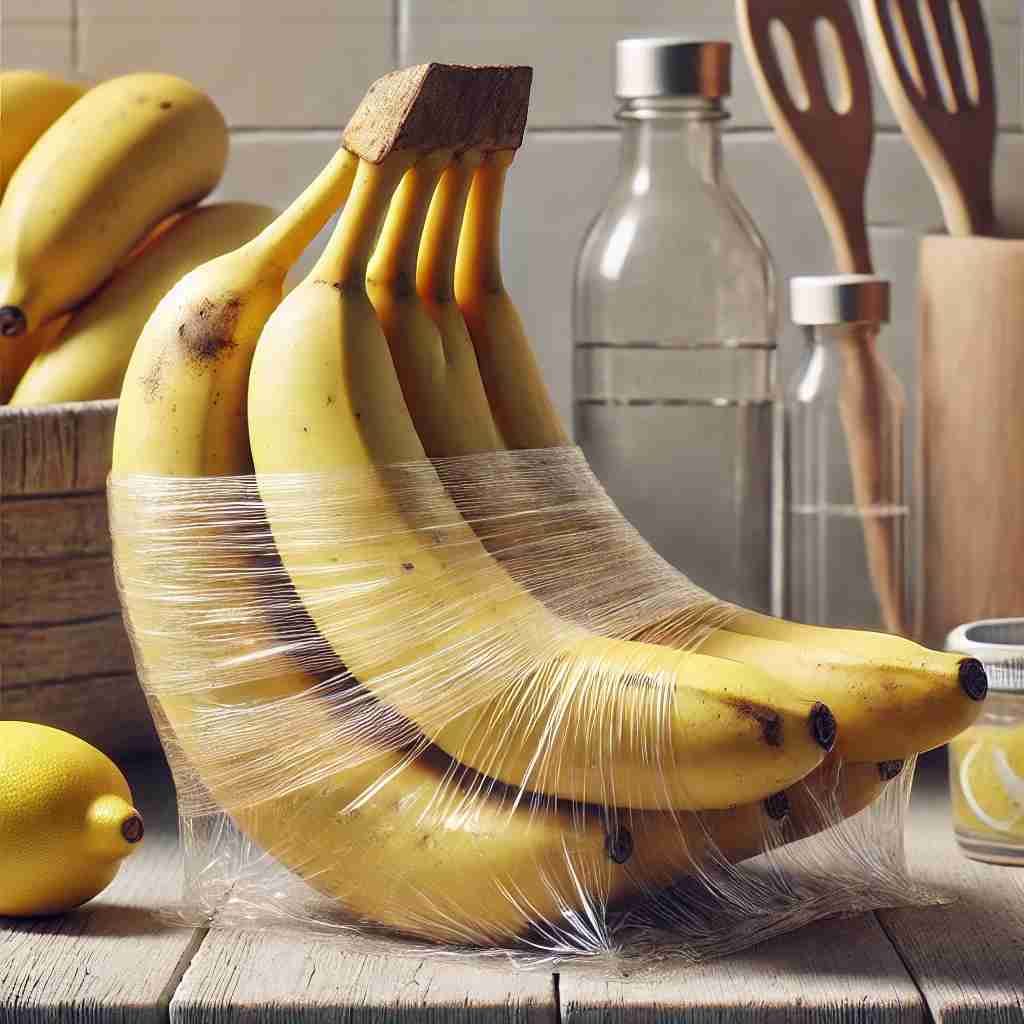 바나나 줄기 부분을 랩으로 감싸면 에틸렌 가스의 방출을 줄여 숙성 속도를 늦출 수 있습니다. 이 방법은 바나나가 너무 빨리 익지 않도록 하는 데 효과적입니다.