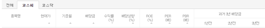 코스피 배당금 높은 주식 수익률순