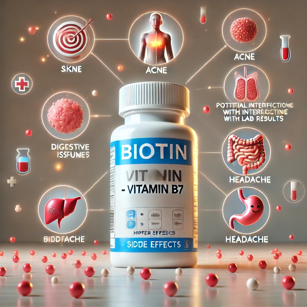 비오틴은 일반적으로 안전하게 섭취할 수 있는 비타민이지만, 과다 섭취 시 다음과 같은 부작용이 발생할 수 있습니다:
