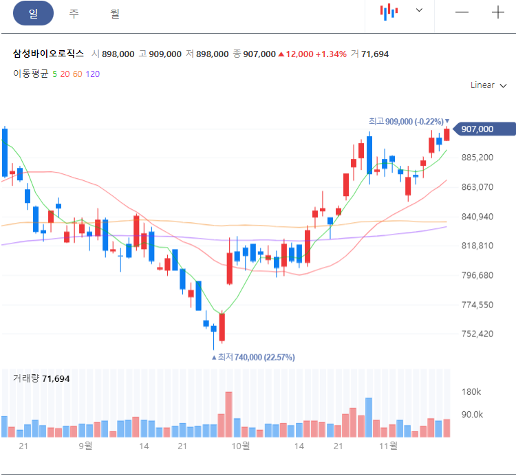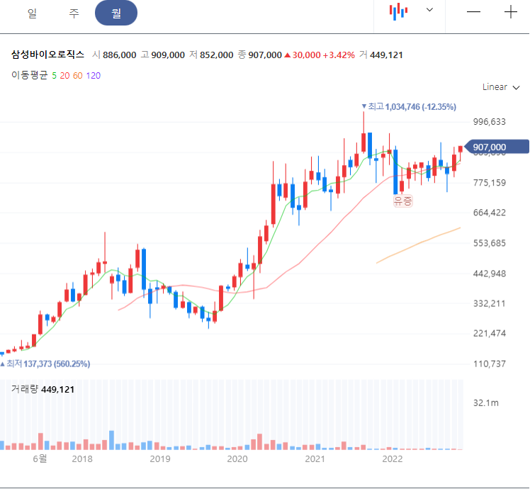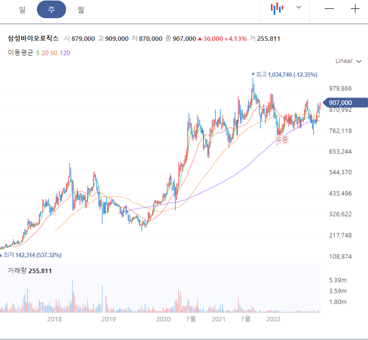 지금 현재 삼성바이오로직스 주가가 어느 정도 수준이며, 앞으로 어떻게 진행이 될지, 차트와 수급, 재료 등을 같이 살펴보도록 하겠습니다. 그리고 삼성바이오로직스 목표 주가도 같이 알아보도록 하겠습니다.
