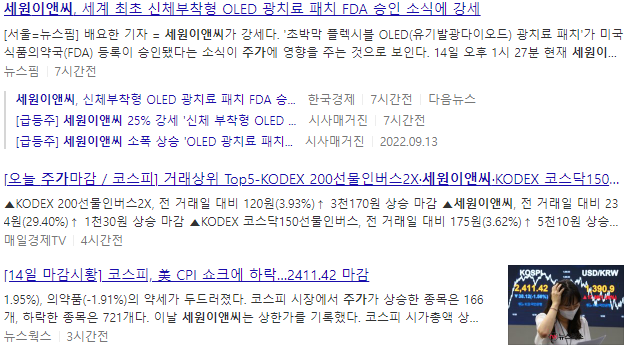 세원이앤씨 주가 언론보도 자료