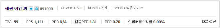 세원이앤씨 주가 전망 목표 주가(091090)