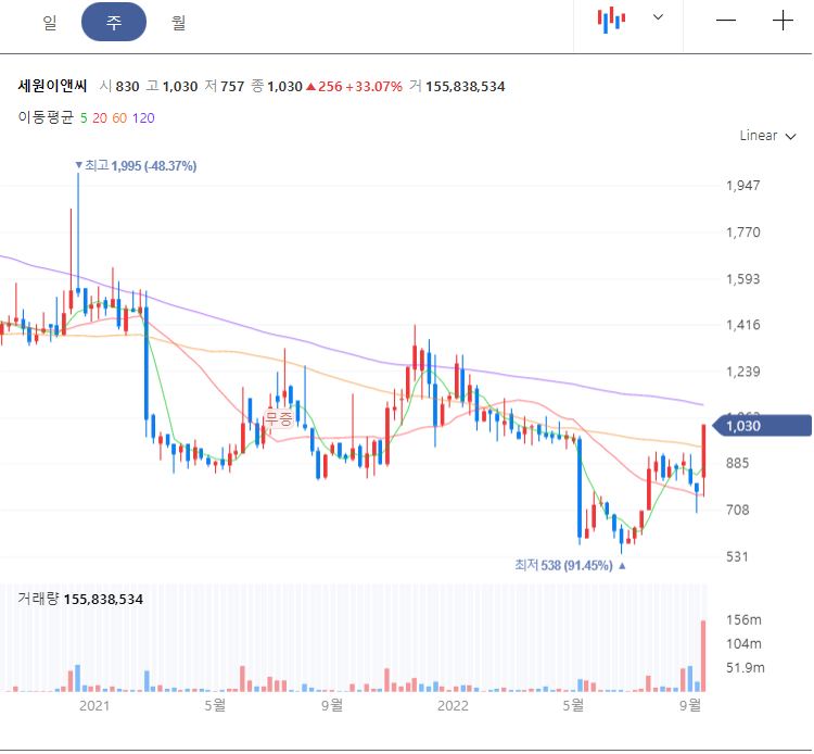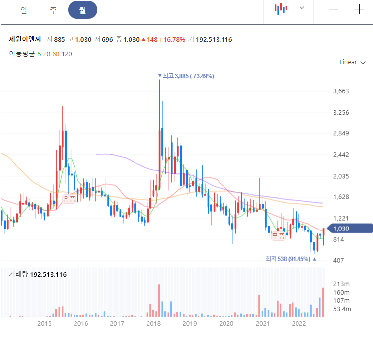 세원이앤씨 주가 차트