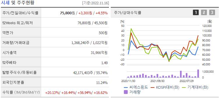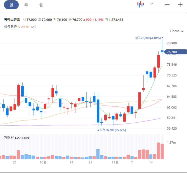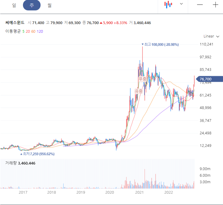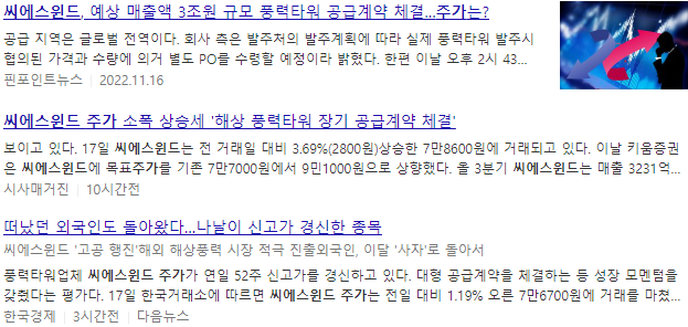 지금 현재 씨에스윈드 주가가 어느 정도 수준이며, 앞으로 어떻게 진행이 될지, 차트와 수급, 재료 등을 같이 살펴보도록 하겠습니다. 그리고 씨에스윈드 목표 주가도 같이 알아보도록 하겠습니다.