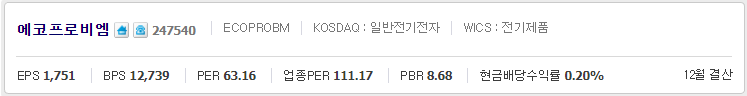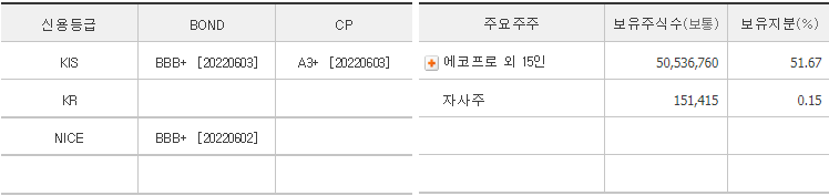 동사는 2016년 5월 1일을 분할기일로 하여 에코프로의 이차전지소재 사업부문이 물적분할되어 신설되었음. 2019년 3월 코스닥 시장에 상장하였음.