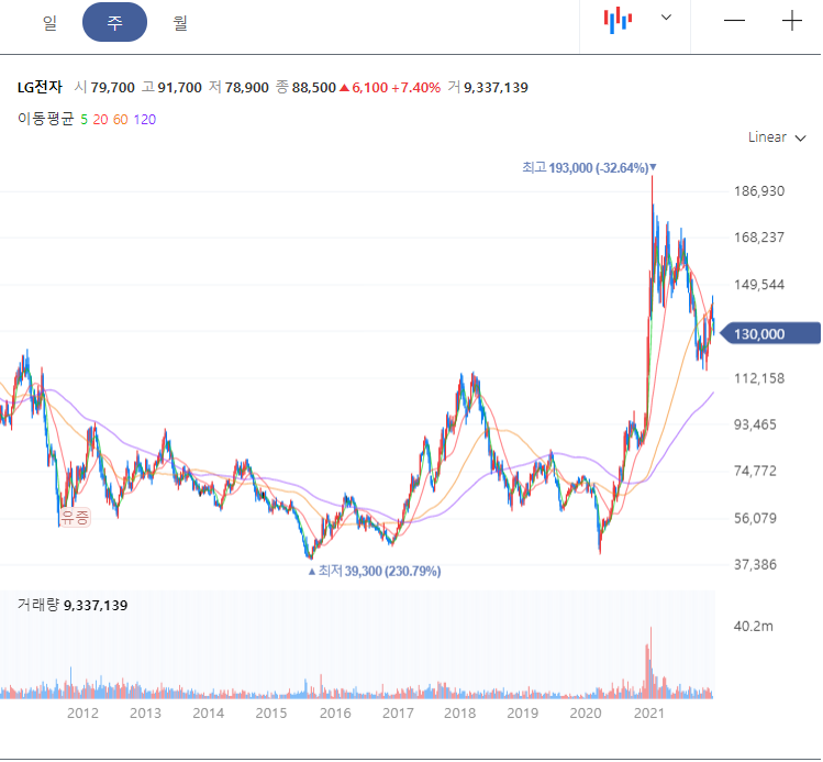 엘지전자 주가가 어느 정도 수준이며, 앞으로 어떻게 진행이 될지, 차트와 수급, 재료 등을 같이 살펴보도록 하겠습니다. 그리고 엘지전자 목표 주가도 같이 알아보도록 하겠습니다.