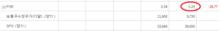 반면 현재 주가가 주당 매출액보다 낮다면 PSR은 1.0배 미만을 밑돌게 됩니다.