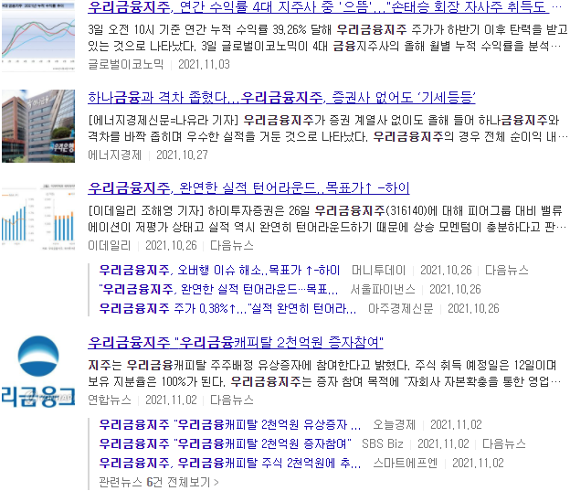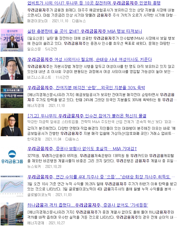 우리금융지주 주가 언론보도 자료