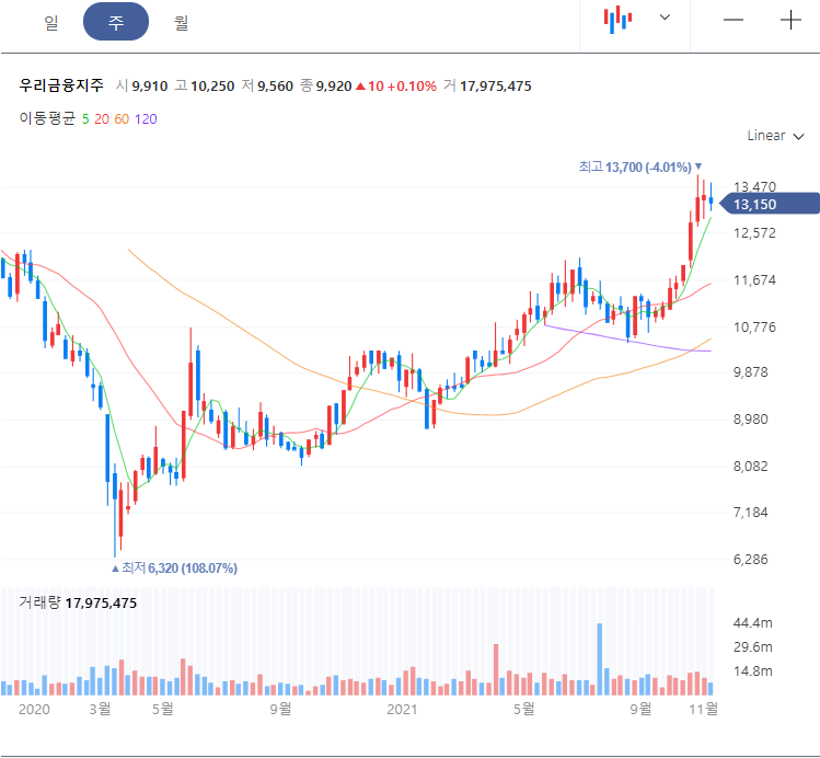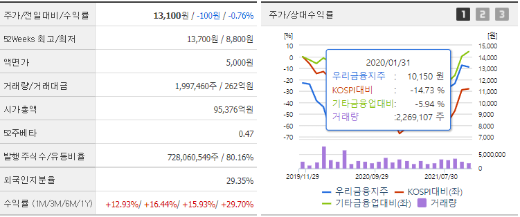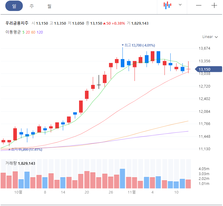 우리금융지주 주가 차트