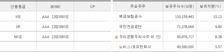 우리금융지주 기타 현황