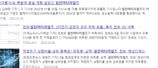 일진머티리얼즈 주가 언론보도 자료