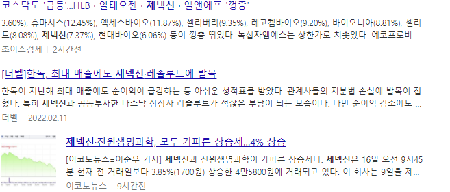 제넥신 주가 언론보도 자료