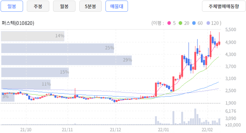 지금 현재 퍼스텍 주가가 어느 정도 수준이며, 앞으로 어떻게 진행이 될지, 차트와 수급, 재료 등을 같이 살펴보도록 하겠습니다. 그리고 퍼스텍 목표 주가도 같이 알아보도록 하겠습니다.