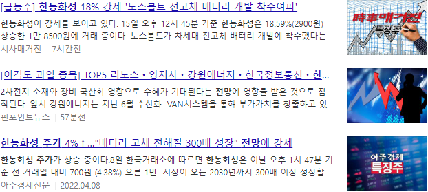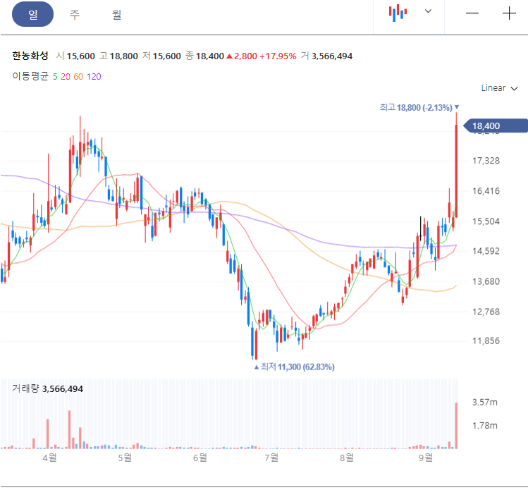 오늘 한농화성은 노스볼트가 차세대 전고체 배터리 개발에 착수했다는 소식에 주가가 17.95% 상승했습니다.