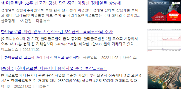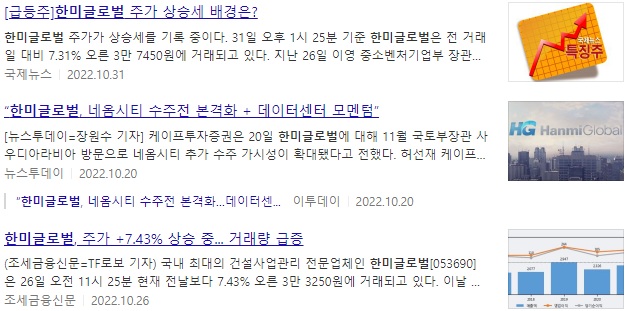 한미글로벌 주가 언론보도 자료