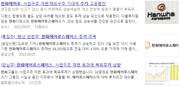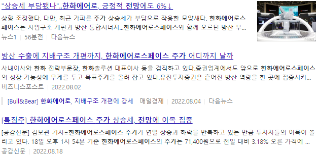 한화 에어로 스페이스에 대해서 알아보았습니다.