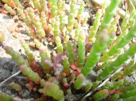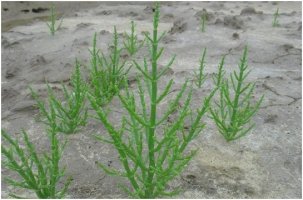 함초는 갯벌이 나 염전 주변에서 자랍니다.