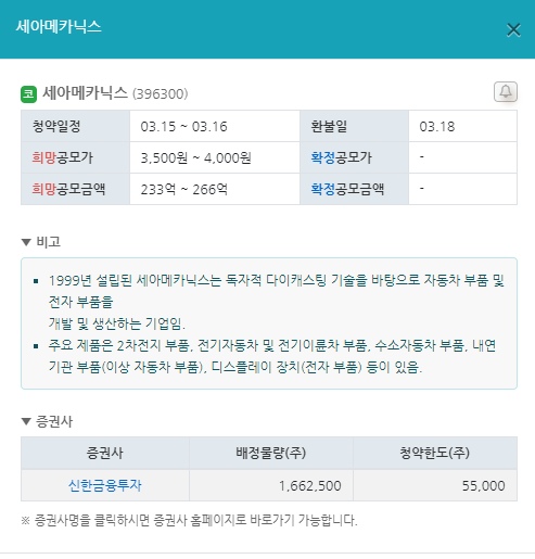 3월 공모주 청약일정 5. 세아메카닉스