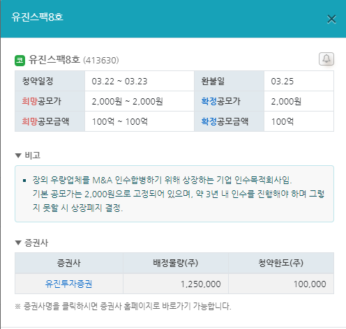 3월 공모주 청약일정 9. 유진스팩8호