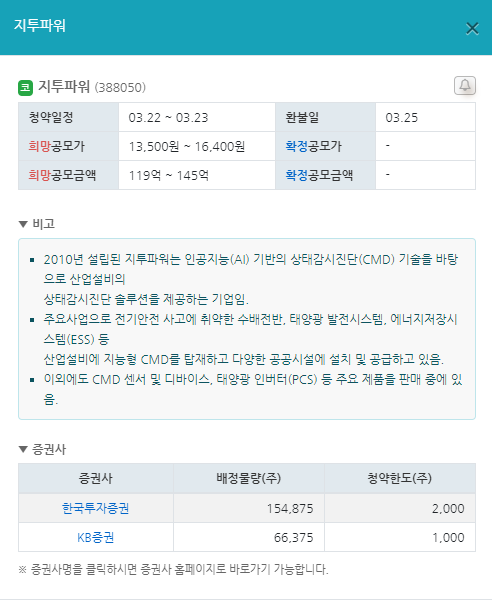 3월 공모주 청약일정 8. 지투파워