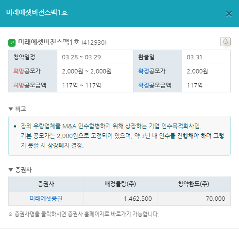 3월 공모주 청약일정 10. 미래에셋비전스팩1호