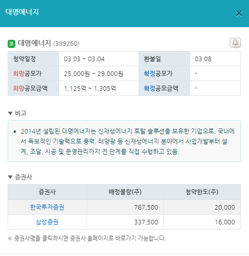 3월 공모주 청약일정 2. 대명에너지