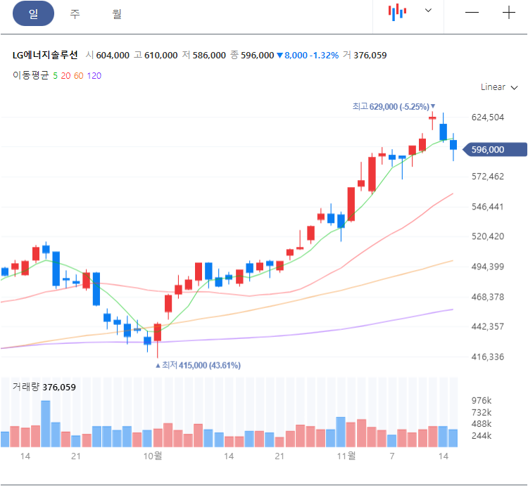지금 현재 LG에너지솔루션 주가가 어느 정도 수준이며, 앞으로 어떻게 진행이 될지, 차트와 수급, 재료 등을 같이 살펴보도록 하겠습니다. 그리고 LG에너지솔루션 목표 주가도 같이 알아보도록 하겠습니다.