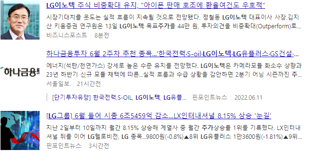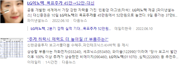 LG이노텍 주가 언론보도 자료