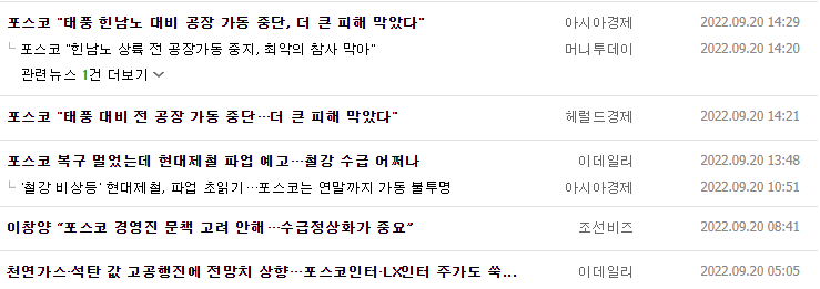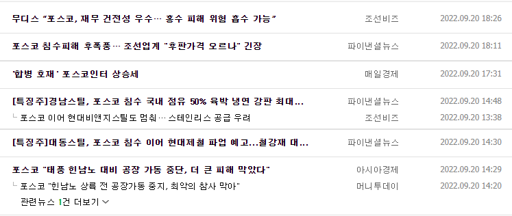 POSCO홀딩스 주가 언론보도 자료